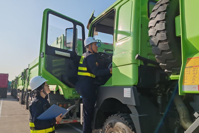 圖為:海關(guān)關(guān)員對(duì)出口幾內(nèi)亞工程車(chē)輛現(xiàn)場(chǎng)查驗(yàn) 韓云婷/攝