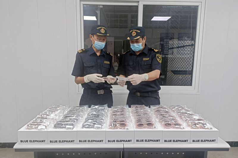 海關(guān)關(guān)員在對1票申報品名為“套頭衫”的貨物進(jìn)行機(jī)檢查驗時,發(fā)現(xiàn)圖像異常。經(jīng)開箱查驗,發(fā)現(xiàn)貨物中夾藏大量“藍(lán)象(BLUE ELEPHANT)”品牌墨鏡,共138副,企業(yè)無法提供授權(quán)證明。經(jīng)權(quán)利人確認(rèn),該批墨鏡侵犯權(quán)利人商標(biāo)權(quán)。
