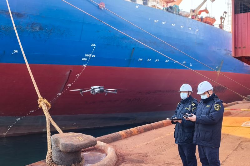 圖為:海關(guān)關(guān)員操作無人機(jī)進(jìn)行水尺檢測作業(yè) 蘇群/攝