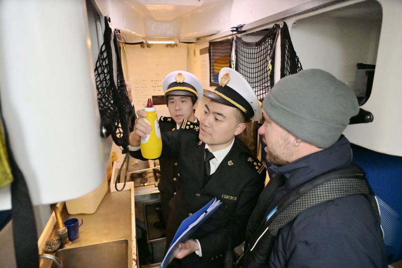 圖為:關(guān)員對入境帆船開展衛(wèi)生監(jiān)督 高瑞剛/攝
