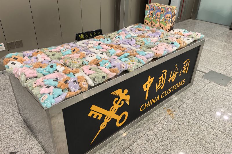 青島膠東機(jī)場海關(guān)查獲攜帶入境侵權(quán)“LABUBU”產(chǎn)品483件(圖)