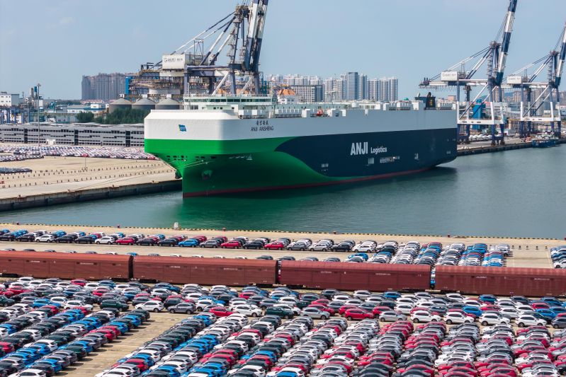 全球最大汽車滾裝船“安吉安盛”輪在煙臺裝船發(fā)運(圖)