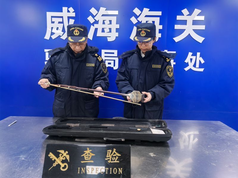 威海海關(guān)查獲蟒蛇皮制二胡1把(圖)