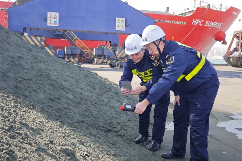 圖為:海關(guān)關(guān)員對(duì)進(jìn)口銅精礦進(jìn)行查驗(yàn) 張春波/攝