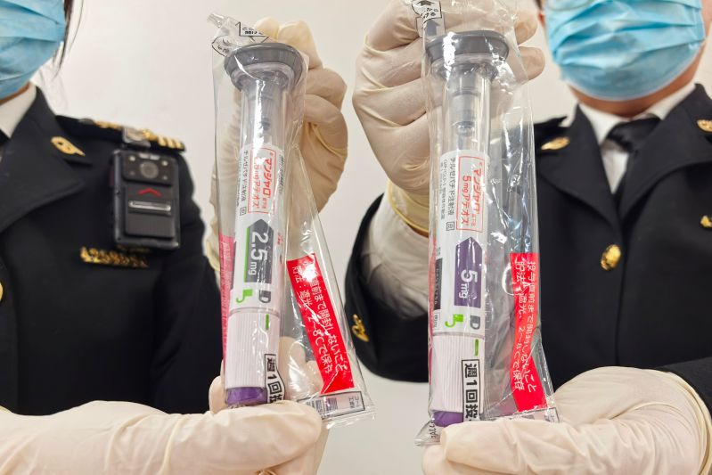 圖為:海關關員查獲的替西帕肽針劑 牟德珠/攝