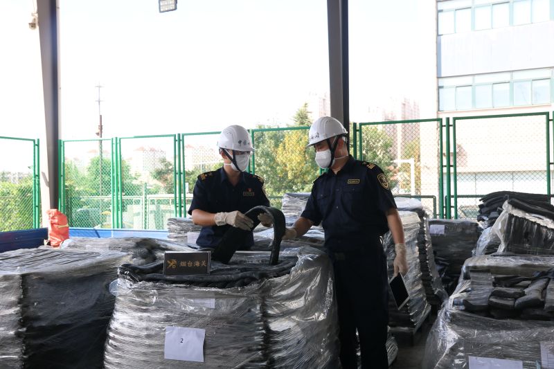 煙臺海關查獲洋垃圾再生橡膠20噸(圖)